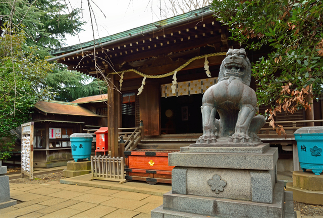 西日暮里の高台に鎮座する、地域を見守る鎮守様。境内からは眼下にトレインビュー(電車が走る様子)も楽しめ、静かで神聖な空気が流れています。毎年8月の例大祭は、多くの露店が並び大変な賑わいを見せます。