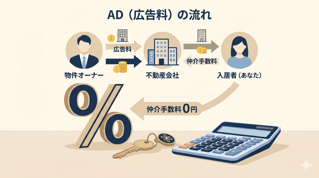 キーワードは「AD(広告料)」。オーナーから報酬が出る物件の仕組み