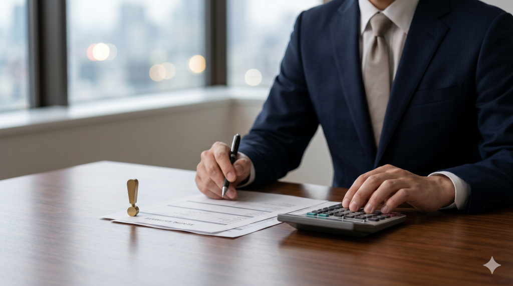 計算はシンプルで、「月額賃料 × 1.1(消費税)」です。管理費や共益費、駐車場代などは計算の基礎に含まれません。 支払いのタイミングは、原則として「契約締結時」または「入居日までの初期費用振込時」となります。内見時や申し込み時に「予約金」として仲介手数料を先払いさせるような行為は不適切ですので注意しましょう。