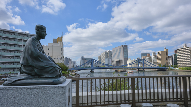 松尾芭蕉が住んでいたとされる場所に建つ記念館と庭園。隅田川と小名木川の合流点にあり、庭園からは川を行き交う船やスカイツリーを眺めることができます。静かに歴史に浸れるスポットです。